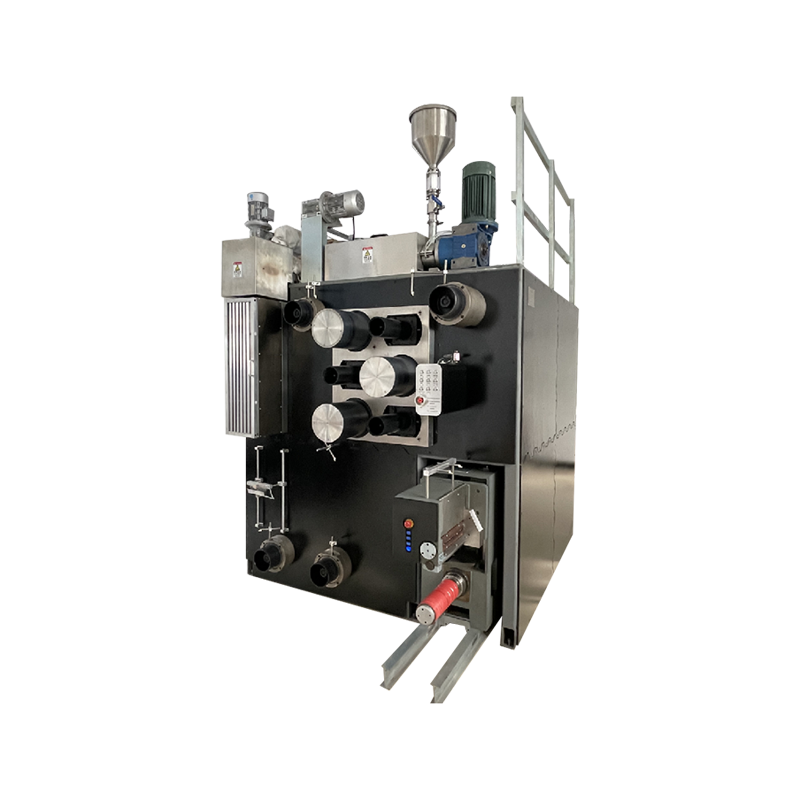 Deze spinmachine is een basistype spinmachine die een van de schroeven in het dubbelschroefssysteem verandert in een meedraaiende drievoudige schroefextruder, die is uitgerust met een boosterpomp, en de gemengde materialen kunnen worden gesponnen zonder granulatie. Het is met name geschikt voor onderzoeksinstellingen, chemische vezelbedrijven en universiteiten om de vormingsprocessen van verschillende materialen zoals PET, PA, PP en PLA te bestuderen.